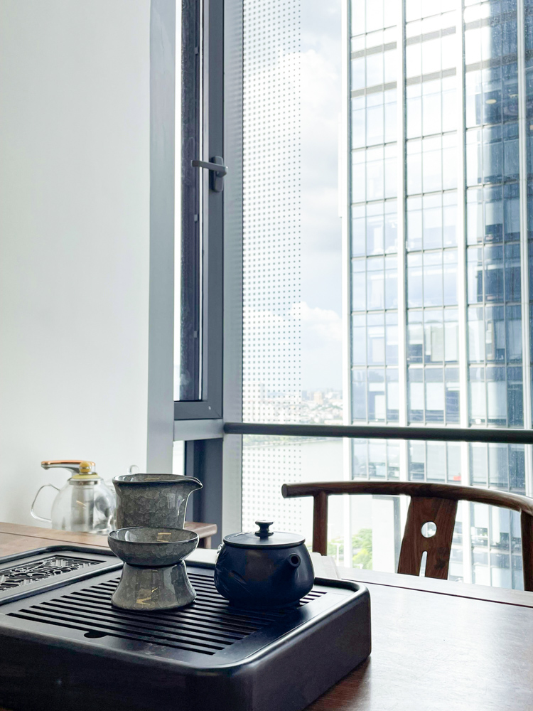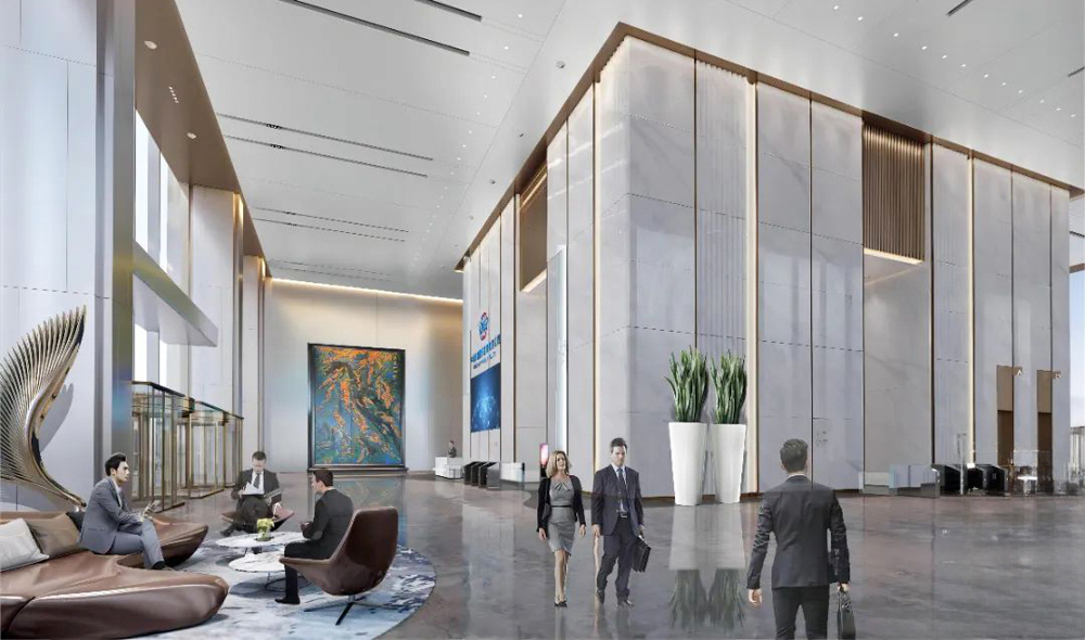 本案为中恒建设集团大湾区办事处的分部入驻海珠区琶洲广州国际航运大厦,其地理位置是琶洲中轴一线临江超甲级写字楼,是数智经济的核心片区。而现代办公室设计越来越注重人文与情感的融合,不仅有功能需求还要创造具有凝聚力的品牌形象与企业愿景。因此,利用得天独厚的地理位置,采用以美学理论作为空间的传达语言艺术,通过现代点、线、面、几何等多重元素延伸,打造现代化的办公室设计装修。