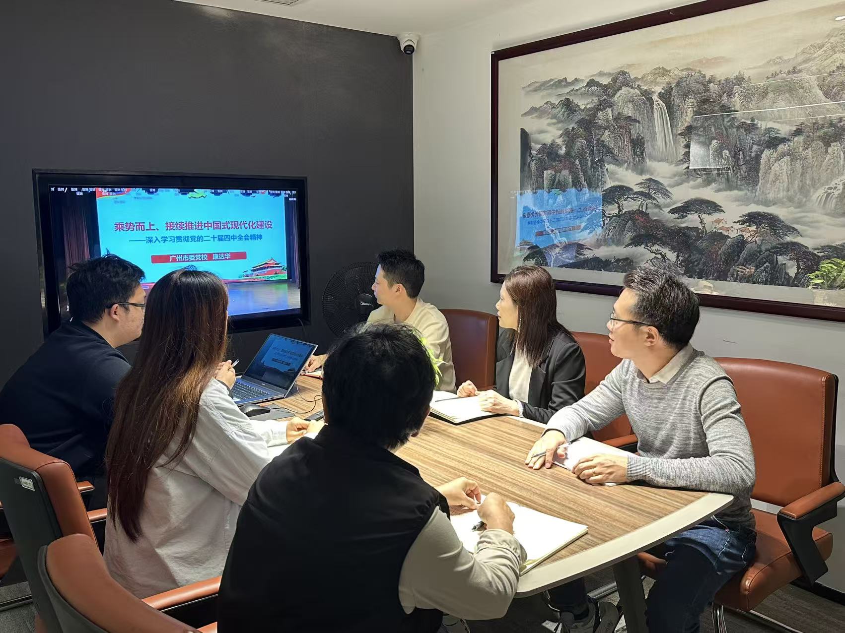 为深入学习宣传贯彻党的二十届四中全会精神,11月6日,华体买球(中国)装饰党支部积极响应号召,组织党员线上学习了市委“两新”工委主办的党的二十届四中全会精神专题辅导。市委“两新”工委特邀广州市委党校经济学教研部副主任、副教授康达华进行线上线下同步直播宣讲。康达华教授以其深厚的理论功底和紧密联系实际的解读,为我们带来了一场思想深刻、内容丰富的学习盛宴,使党员深受教育和鼓舞。